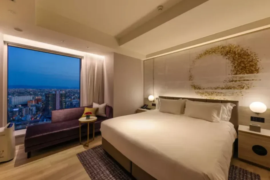 全客室が17階以上にあり、高い天井の大きな窓から大阪の眺望を楽しめます。